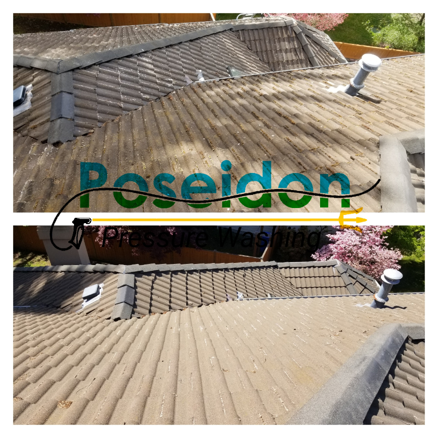 We pulled out nearly two full wheelbarrows full of debris from this homes gutters! The roof was also treated to prevent moss growth.